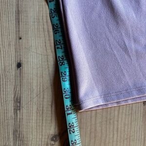 Gorgeous fitted formal jumpsuit. A beautiful dusty mauve light pink color. Long balloon sleeves. Slightly flared legs. Wired “V” neck in the center of a square neckline adds lovely detail. Stretchy material. Material tag missing. Pull on styling. No tag for size but I would say its closest to a medium. Very small snag spot documented in photos. VERY slight stain also documented in photos. Colors vary in photos. The cover photo in the sunlight is the closest. As well as the other sunlight picture.