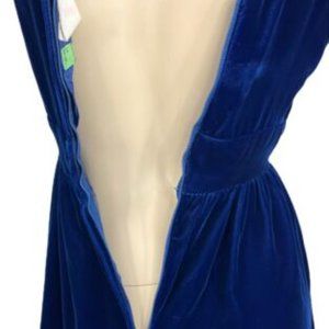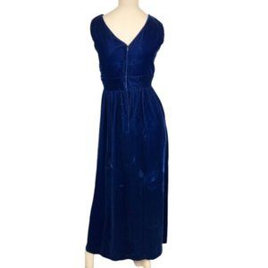 Vintage Formal Gown Blue Velvet Bead Rhinestones V Neck Empire Waist Size Small