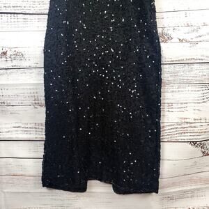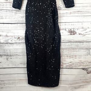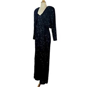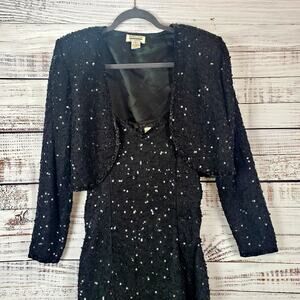 Vintage Formal Silk Black Sequin Beaded Dress Glam Event Gown Bolero Jacket Sz M