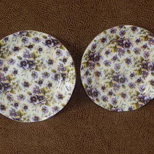 Vintage Formalities by Baum Bros Chintz Violet Purple Pansy Dessert Salad Plates