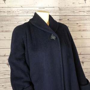 Absolutely beautiful navy swing coat with 1 front button closing by the neck.
