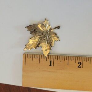 Small brooch featuring a maple leaf design with intricate detailing, crafted from sterling silver. A timeless accessory for a subtle yet elegant touch.