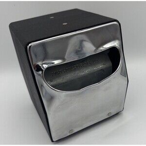 The Vintage Fort Howard Double Sided Table Top Napkin Dispenser Holder is a stylish and functional addition to any restaurant or dining establishment. Made of durable stainless steel and featuring a unique minifold napkin type, this tabletop dispenser from the United States is sure to add a touch of retro charm to your table setting. With a double-sided design, this tidy nap dispenser holder from Fort Howard Paper Co offers a convenient and practical solution for keeping napkins easily accessible and organized for your customers.