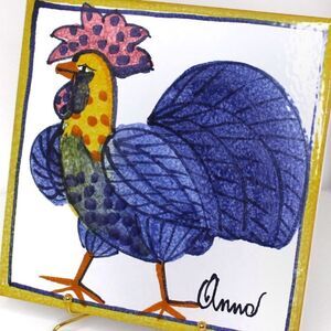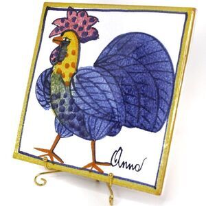 Vintage Fortini Made in Italy Signed Hand Painted Ceramic Decorative Rooster Tile.