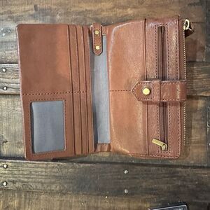 Vintage Fossil 1954 Brown Leather Wallet Wristlet Organizer Clutch