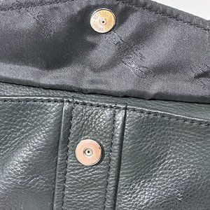 In good preowned condition. The strap holders have corner edge wear (does not affect function.) The strap has some friction scuffs. There are minor scuffs on the leather exterior flap pocket. The zipper pull has some scratches. Very clean interior. Please view all photos to assess details and condition.