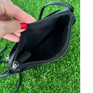 This vintage Fossil purse is a classic piece made from high-quality genuine leather. It features a sleek black exterior with a clean interior, making it perfect for everyday use. The long single strap allows for comfortable crossbody wear, while the lightweight design ensures ease of carrying.