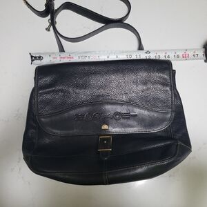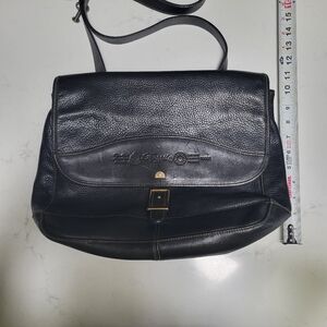 Vintage Fossil Black Leather Messenger Bag 75082