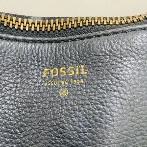 Vintage Fossil Black Leather Y2K Shoulder Bag Tote Classic Minimal