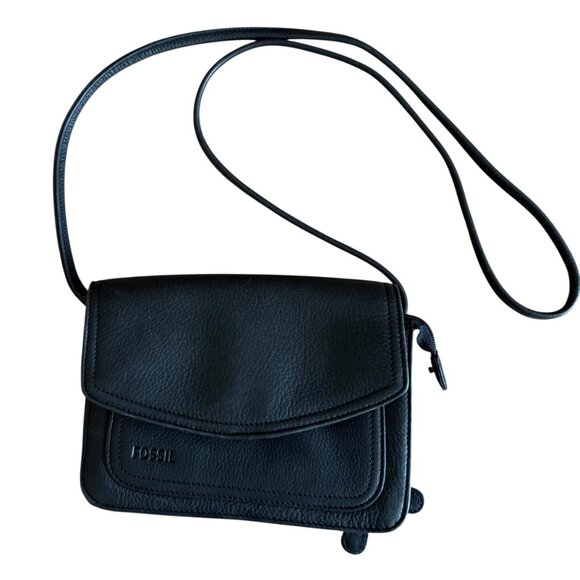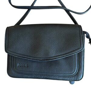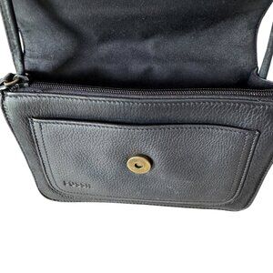 Vintage Fossil Black Pebbled Leather Envelope Bag Crossbody Handbag Purse
