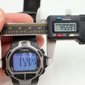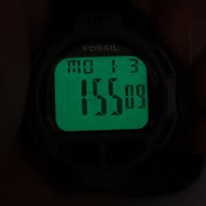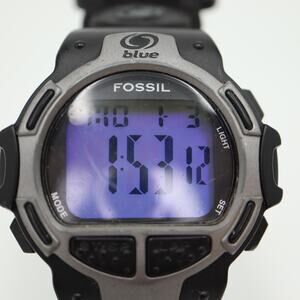 Vintage Fossil Blue Digital Watch Mens 45mm Black Adjustable Band New Battery