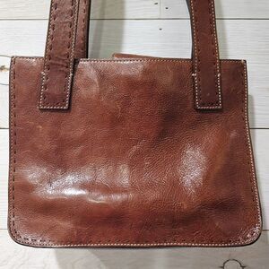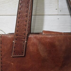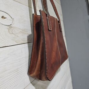 Vintage Fossil Brown Leather Handbag Purse Double Handle Snap Closure Tote Bag