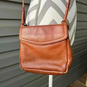 Vintage Fossil Brown Leather Small Crossbody Shoulder Bag Purse