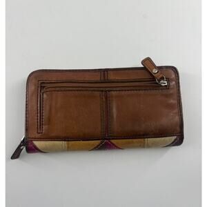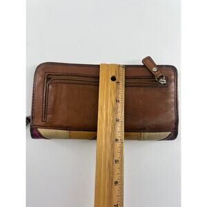 Vintage Fossil Brown Patchwork Suede & Leather Zip Clutch Boho Hippie Wallet