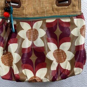 Vintage Fossil Coated Canvas Floral Theme Key Per Tote Bag Shoulder Bag Purse