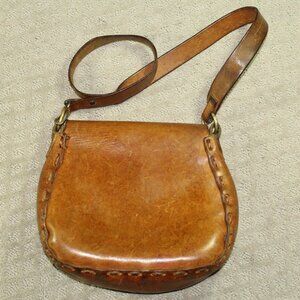 Vintage Fossil Cognac Heavy Saddle Leather Flap Crossbody Purse