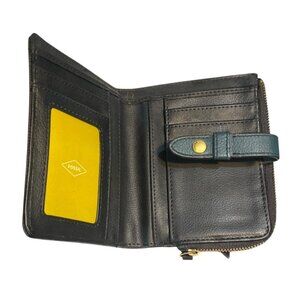 Vintage Fossil Ellis Patchwork Leather Wallet Clutch Black Brown NOS