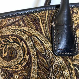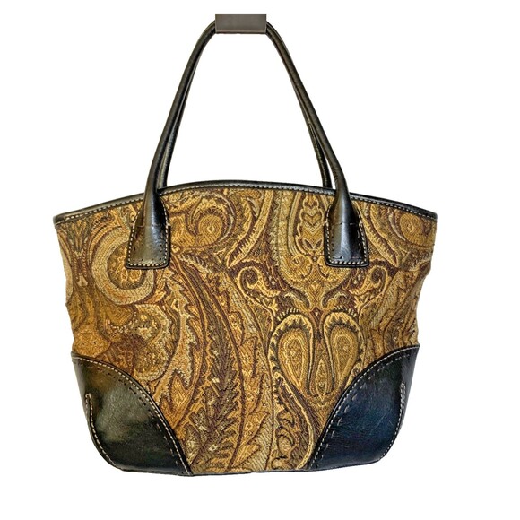 Vintage Fossil Forever Paisley Tapestry Purse Leather Accents Boho Y2K