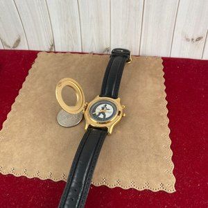 Vintage Fossil Gold Edition 1997 James Bond 007 Fossil Gold Limited Edition LI-1638 198 of only 1,000 made 18K Gold Plated all original, has a Satin Finish Pop open Front Tunnel High Polished Case with original 9.5 inch Black leather Strap fossil buckle Limited Edition, Luminous Hands, Push/Pull Crown, Seconds Hand, Water-Resistant Fossil James Bond 007 Gold Edition perfect Mineral Crystal serviced new battery comes with aftermarket box
