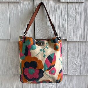 Vintage Fossil Hunter Floral Hobo Cloth Bag with Silver Lock