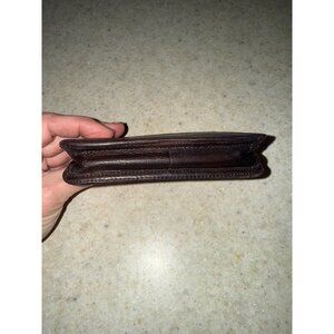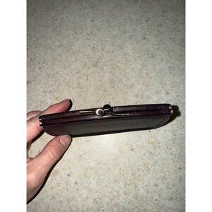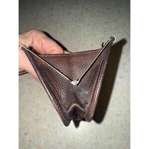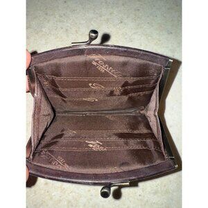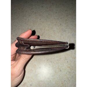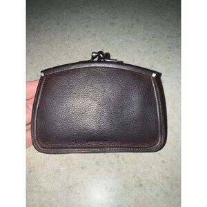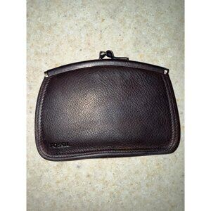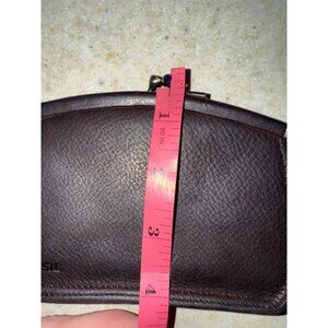 Vintage Fossil Kiss Lock Genuine Brown Leather Card Holder Coin Purse Wallet
