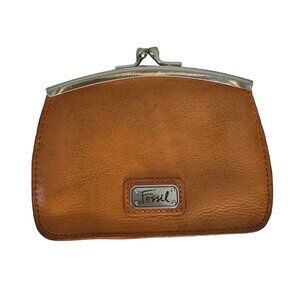 Vintage Fossil Kiss Lock Wallet Card Holder Change Purse Saddle