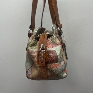 Vintage Fossil Leather Purse Bag Shoulder Travel Map Postcard Paris 1954
