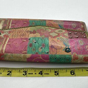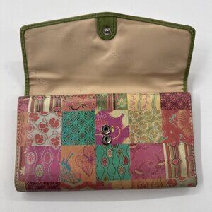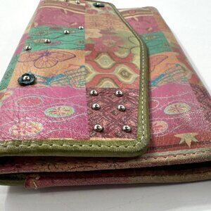 Vintage Fossil Leather Wallet Patchwork Studded Trifold Zip Snap Checkbook Cards