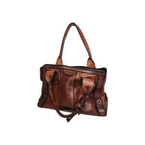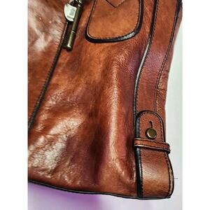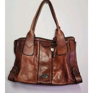 Vintage Fossil Reissue Large Satchel Handbag Camel Brown Leather With Key Charms