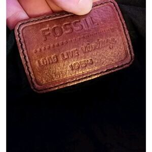 The Vintage Fossil Reissue Large Satchel Handbag in camel brown leather is a stylish and spacious accessory for women. With a rectangular shape and double brown leather handles, this handbag exudes a classic yet trendy vibe. The zip closure and leather lining add touch of luxury and durability. The inclusion of key charms adds a playful and unique element to this satchel/top handle bag from the Fossil Reissue collection. Perfect for any fashion-forward woman looking to make a statement with her handbag.
