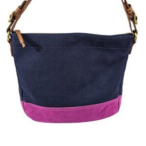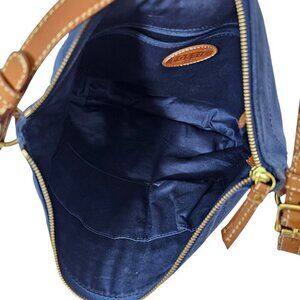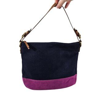 Vintage Fossil Suede Navy and Purple Adjustable Strap Full Zip Shoulder Handbag
