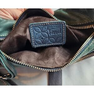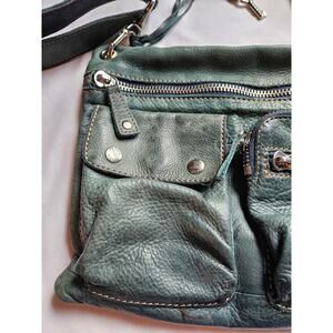 Vintage Fossil Sutton Crossbody Pebbled Leather Bag Green Silver Hardware Purse