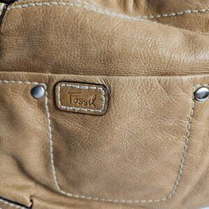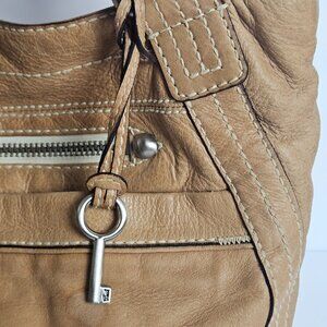 Vintage Fossil Tan Leather Shoulder Bag w/ Key – Classic Y2K Project Tote ZB2678