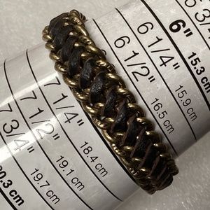 Vintage Fossil Toggle Black Leather/Gold-tone Bracelet