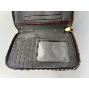 Vintage Fossil Wallet Red Burgundy Zip Leather Pockets 6 x 4 Boho Indie Travel