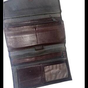 The wallet is M-sized and has a solid pattern, making it a versatile accessory for any outfit. Whether you're running errands or heading out for a night on the town, this wallet is sure to impress. Made in an unknown country or region, this vintage Fossil wallet is a unique find that will add a touch of sophistication to any wardrobe.
