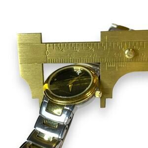 Crafted from stainless steel and featuring a black dial adorned with a singular rhinestone, this two-tone watch exudes elegance and sophistication.