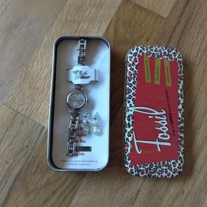 😺 Vintage Fossil Watch and Earring Set - 1998