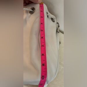 Vintage Fossil Women’s Soft, White Leather Bucket Purse w/Braided Leather Drawstring, Silver Grommets & Silver Accent Bolo, Adjustable Shoulder Strap, Silver Key