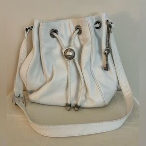 Vintage Fossil White Leather Bucket Purse w/Braided Drawstring & Silver Accents