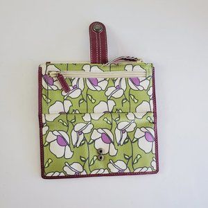 ❌️Vintage Fossil Whtie Floral Leather Snap Wallet Green Maroon Purple Y2K NWOT