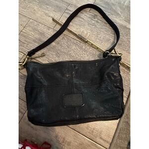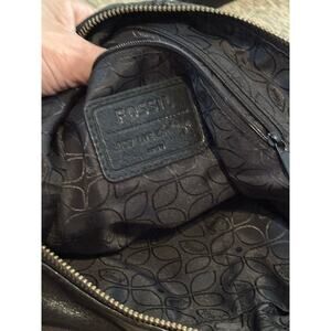 Vintage Fossil Women's Black Leather Foldover Modern Cargo Crossbody Bag