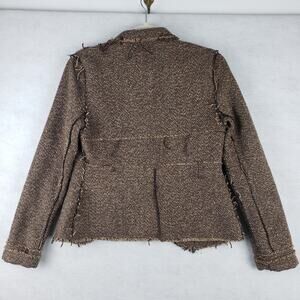 Vintage Fossil Women's S Frayed Tweed Open Blazer Jacket Brown Old Money Preppy