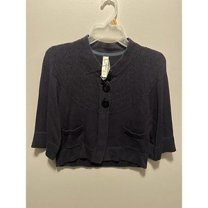 Vintage Fossil Womens Sz S Cropped Cardigan Sweater Dark Blue Boho Pockets. 3 Buttons Fossil brand apparel