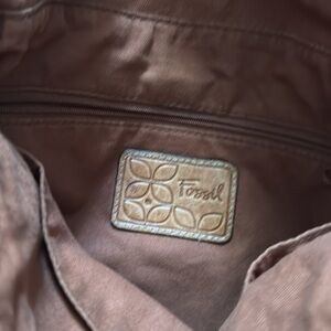 Vintage Fossil leather and canvas keeper Crossbody purse