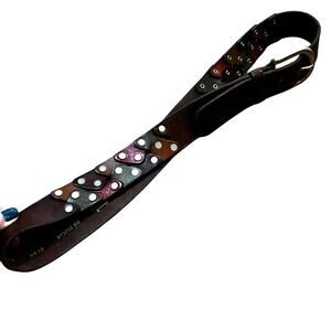 Vintage Fossil leather belt multi color woven studded Boho Festival Size M