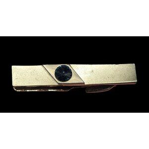 Enhance your vintage accessory collection with this elegant Foster tie clip, featuring a captivating grey faceted stone set in gold-tone metal. Perfect for adding a touch of sophistication to any suit.