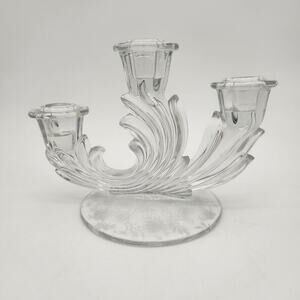 Vintage Fostoria 3 Scroll Candlestick Holder Navarre Etching On Circular Foot