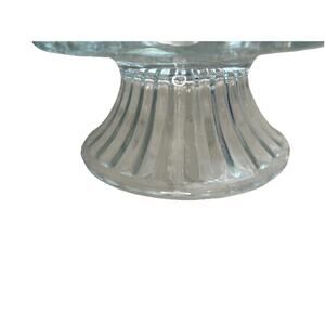 Vintage Fostoria American Footed Trifle Bowl, a timeless piece reflecting the elegance of the 1950s. The clear glass bowl showcases a distinctive cubed pattern, complemented by its round shape, making it a striking addition to any tabletop or showcase. Measuring 6 inches in diameter and standing 5.5 inches tall, this bowl is perfect for hosting guests or adding a touch of sophistication to your home.