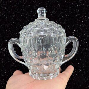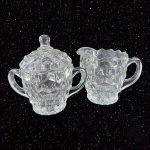 Vintage Fostoria American Glass Cubist Cream and Sugar Set 2 Clear Crystal VTG